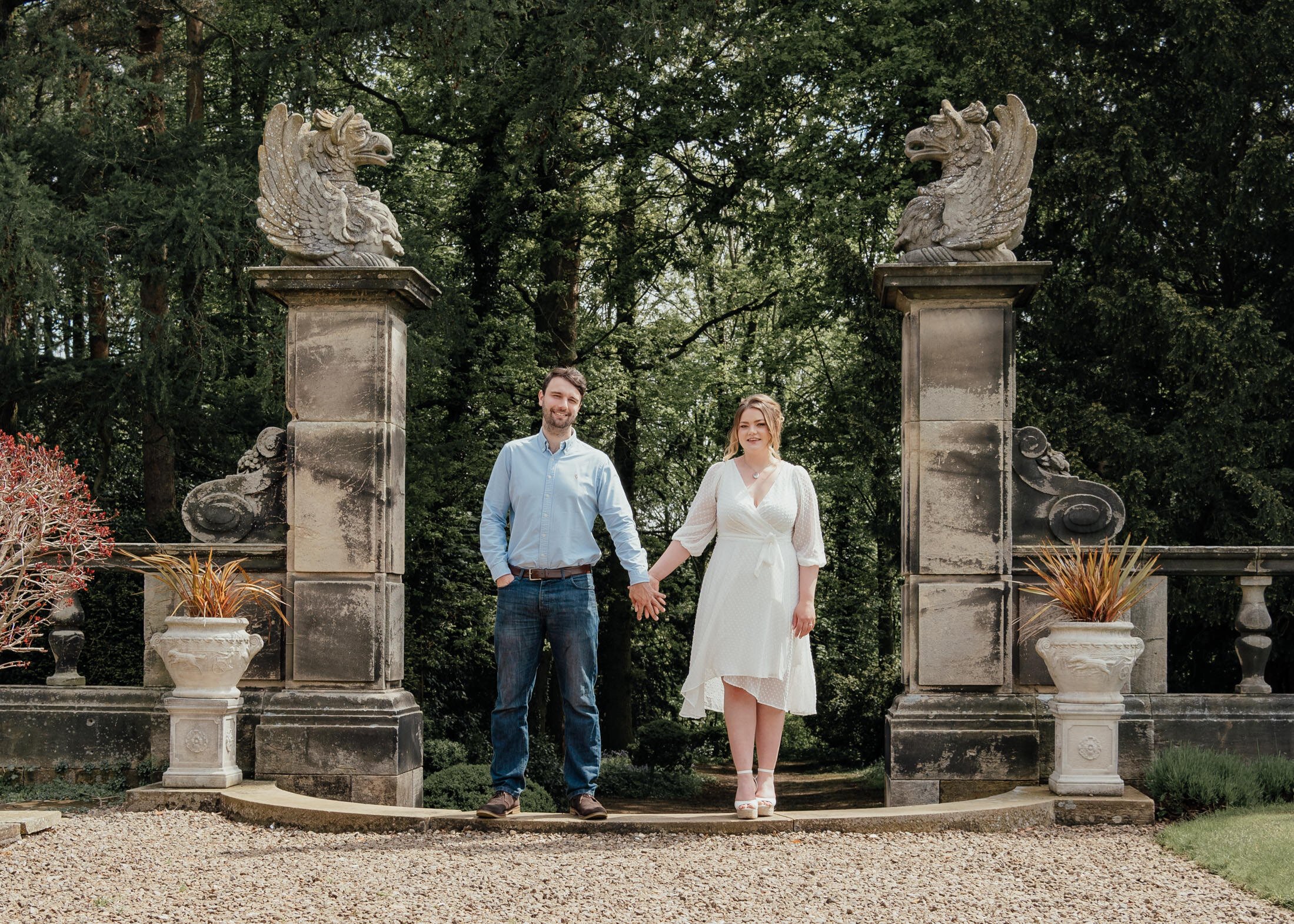 After an unusually wet May we were treated with sunshine and a warm afternoon for their engagement photography shoot at their wedding venue – Crathorne Hall in Yarm. Suzie had known she’d wanted to get married at this stunning local country house wedding venue since she was small and loved visiting once more with Jacob for their engagement photos.